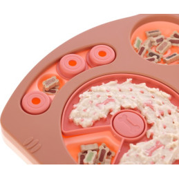 Lelu on valmistettu kestävästä ja antibakteerisesta polypropeenimuovista, joka kestää toistuvaa käyttöä. Sileät pinnat helpottavat puhdistusta, ja ruuvilla kiinnitetty päällyslevy voidaan irrottaa kokonaan pesua varten. Pituudeltaan 30 cm ja leveydeltään 28 cm oleva lelu tarjoaa sopivan kokoisen haasteen useimmille pienille ja keskikokoisille lemmikeille. Pohjassa olevat kuminapit pitävät lelun paikoillaan, vaikka lemmikki olisi innokas tutkimaan ja syömään. Tuote sopii käytettäväksi kotona päivittäiseen virikkeellistämiseen, yksinolon ajaksi tai ruokailun rauhoittamiseen. Se tuo tekemistä ja helpottaa arkea niin lemmikille kuin omistajalle.