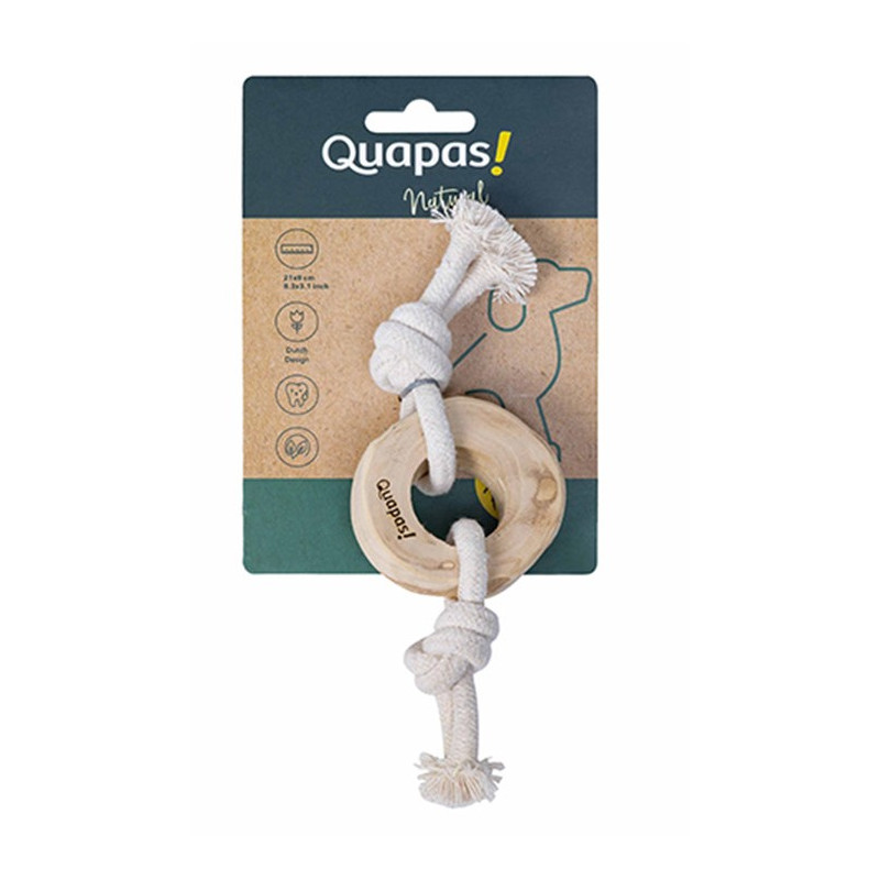 Quapas! koiran vetolelu kahvipuu 25cm on suunniteltu aktiiviseen yhdessäoloon. Keskellä oleva kova kahvipuusta valmistettu rengas tarjoaa sopivan vastuksen puremiseen ja toimii hyvänä tarttumakohtana. Molemmista päistä lähtevät köydet tekevät lelusta erinomaisen valinnan veto- ja heittoleikkeihin. Köysien rakenne aktivoi koiran luonnollista puruviettiä ja tekee lelusta kiinnostavan myös omatoimiseen pureskeluun. Leikki tuo koiran arkeen liikettä ja virikkeitä, ja se sopii hyvin sekä kotipihaan että olohuoneeseen. Lelu kannustaa yhteiseen tekemiseen ja rakentaa luottamusta koiran ja omistajan välillä.