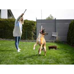 Kerblin TPR-lelu köydellä yhdistää kestävyyden ja hauskanpidon koirasi iloksi. Lelun vahvasta TPR-materiaalista valmistettu puruosa on erittäin kestävä ja puremista sietävä, mutta samalla hellävarainen hampaille ja ikenille. Oranssin puruluun läpi kulkee 30 cm pitkä köysi, joka tarjoaa monipuolisia mahdollisuuksia vetoleikkeihin ja yhteisiin treenihetkiin. Lelu kelluu vedessä, joten se soveltuu mainiosti myös vesileikkeihin ja uimaharjoituksiin. Kompaktin kokonsa ansiosta (12,5 cm / ø 7 cm) se on helppo ottaa mukaan niin lenkeille kuin matkalle. Tämä monipuolinen lelu aktivoi koiraa ja tekee yhteisestä leikistä entistä hauskempaa.