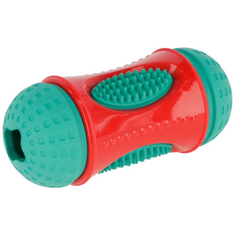 Kerblin täytettävä aktivointilelurulla tekee koiran päivistä hauskempia ja monipuolisempia. Rullan sisälle voi kätkeä koiran suosikkiherkkuja tai kuivamuonaa, mikä houkuttelee koiraa leikkimään, pyörittämään ja tutkimaan lelua pitkään. Se tarjoaa sekä aktivointia että palkitsevia hetkiä, jotka stimuloivat koiran luontaista uteliaisuutta. Kestävästä kumista valmistettu rulla on tukeva ja pitkäikäinen, mutta silti hellävarainen hampaille ja ikenille. Kirkkaan puna-vihreä väri tekee lelusta helposti havaittavan niin sisällä kuin ulkona. Kompakti koko (13 x 6 cm) tekee siitä ihanteellisen monenlaisille koirille ja helpon ottaa mukaan myös matkalle.