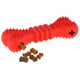 Kerblin täytettävä aktivointilelu tarjoaa koirallesi hauskaa ja monipuolista tekemistä jokaiseen päivään. Lelun sisälle voi piilottaa herkkuja tai kuivaruokaa, mikä lisää haastetta ja palkitsee koiraa sen onnistuessa. Kestävästä ja tukevasta kumista valmistettu lelu sopii erinomaisesti niin aktivointiin kuin heittoleikkeihin, ja sen muotoilu tekee siitä helpon kantaa ja pureskella. Materiaali on hellävarainen hampaille ja ikenille, joten leikki on turvallista kaikenikäisille koirille. Luu on 17 cm pitkä ja kompakti kooltaan, mikä tekee siitä ihanteellisen useille keskikokoisille koiraroduille.