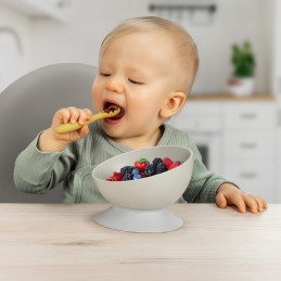 Kahvojen ergonominen muoto ja liukuesteet auttavat pientä kättä pitämään otteensa. Kevyt rakenne ja pienikokoinen lusikkapää ehkäisevät ruokailuun liittyviä vaaratilanteita, kuten tukehtumista.