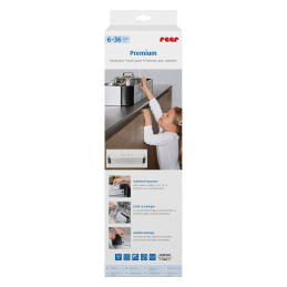 Liesisuoja on 12 cm korkea, mikä estää lasta kurottamasta ritilän yli. Täysin suljettu rakenne tekee myös ritilän läpi kurkottamisen mahdottomaksi. Lisäsuojaa tuovat 26 cm pitkät sivupaneelit, jotka estävät kattiloiden ja pannujen alas vetämisen sivusuunnasta. Liesisuoja sopii sekä sähkö- että induktioliesille. Sen säädettävä leveys 44-65 cm mahdollistaa suojan mukauttamisen keittotason kokoon. Erityinen teippikiinnitys kiinnittää suojan pidikelistat suoraan työtasoon, joten se sopii kaikille työtasoille materiaalista ja paksuudesta riippumatta.