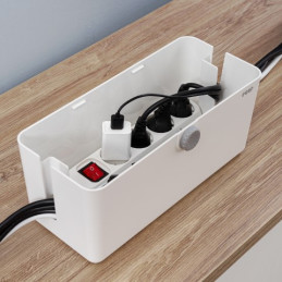 Kaapeliboksin lukittava kansi tekee siitä erityisen lapsiturvallisen. Pienet sormet eivät pääse käsiksi vaarallisiin pistorasioihin tai johtoihin. Lisäksi kiertolukitus varmistaa, ettei lapsi saa kantta auki, pitäen vaaran poissa. Laahautuvat johdot ovat paitsi kompastumisriski myös kuristumisvaara, jos lapsi alkaa leikkiä niiden kanssa. Kaapeliboksi auttaa pitämään johdot siistinä ja poissa pienten jaloista.