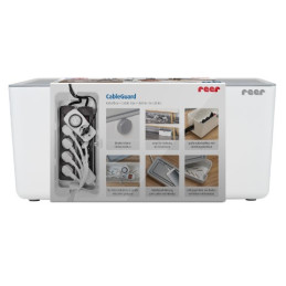 Johdot asettuvat turvallisesti boksin sisälle, ja erityinen johdonohjaus estää lasta vetämästä niitä ulos. Reer kaapeliboksi on tilava, käytännöllinen ja tarjoaa ilmanvaihtoratkaisun, joka estää ylikuumenemista. Tässä kestävästä muovista valmistetussa kaapeliboksissa yhdistyvät laatu ja käytännöllisyys, pitäen kodin turvallisena ja siistinä.