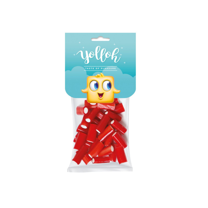 Yolloh röda visselpipor erbjuder en jordgubbssmakupplevelse som snabbt tillfredsställer ditt sötsug. Dessa klassiska jordgubbslakritser tar dig på en smakresa till barndomens söta minnen. Deras fylliga och mjuka konsistens gör dem till det perfekta godiset för både vardag och fest. Oavsett om det är filmkväll, födelsedagskalas eller bara en liten godisstund, är Yolloh röda visselpipor alltid det rätta valet.