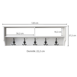 Päivikki seinään kiinnitettävä naulakko tarjoaa erinomaisen ratkaisun vaatteiden ja muiden tavaroiden säilytykseen. Sen mitat – leveys 120 cm, korkeus 37,2 cm ja syvyys 22,2 cm – tekevät siitä tilavan ja monikäyttöisen säilytysratkaisun. Naulakossa on viisi koukkua takeille ja muille vaatteille, sekä hyllyjä, jotka tarjoavat runsaasti lisäsäilytystilaa esimerkiksi hatuille, käsineille ja asusteille.