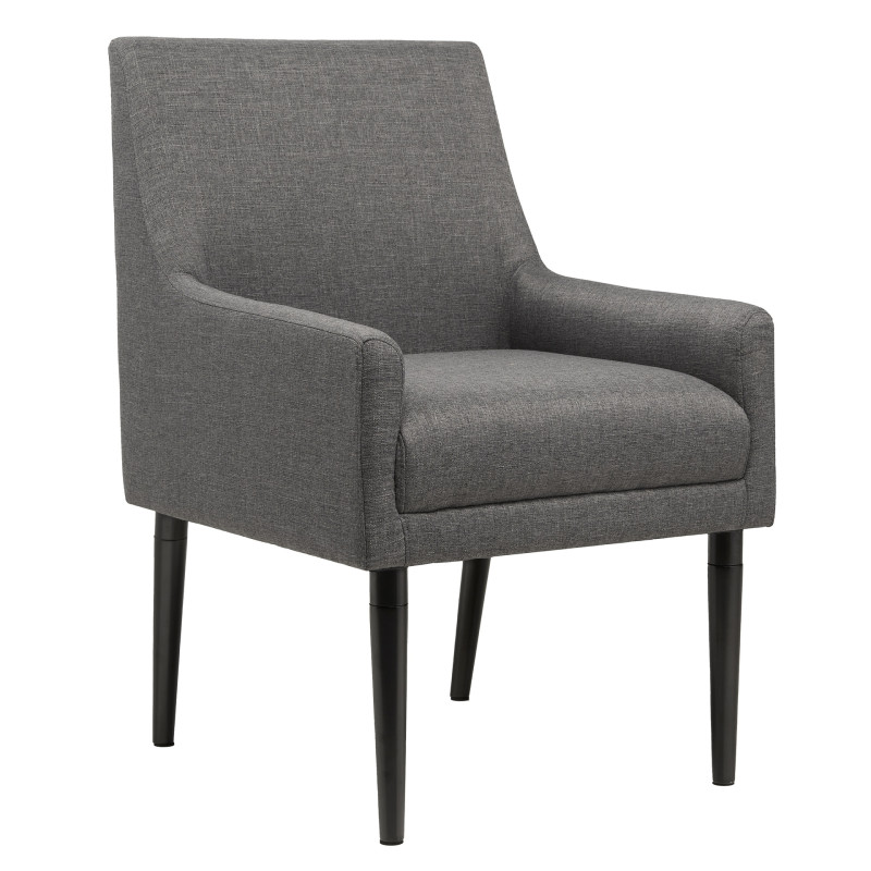 Kauniisti muotoiltu kauttaaltaan pehmustettu ja kangasverhoiltu nojatuoli. Sirot jalat tuovat kokonaisuuteen ilmavuutta, mikä antaa enemmän mahdollisuuksia tuolin sijoitteluun. Hillityn sävyinen tuoli tuo rauhallisuutta ja yksinkertaista linjakkuutta tilaan kuin tilaan.