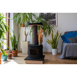 Tyylikkäät värit ja tyylikäs muotoilu - mustan ja harmaan sävyjen ansiosta tämä raapimatolppa sopii mihin tahansa sisustukseen.