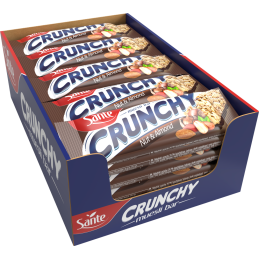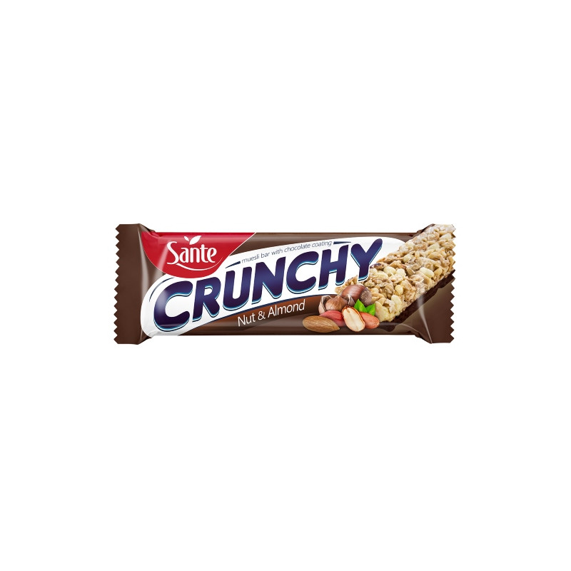 Nötter 29,7 % (jordnötter, hasselnötter, mandelflingor 2 %), glukossirap, framställd av spannmål 19 % (havreflingor, majsmjöl, rismjöl), choklad 18 % (kakaomassa, socker, kakaosmör, emulgeringsmedel: lecitiner (soja), E492; naturlig vaniljsmak), palmfett, fuktighetsbevarande medel: sorbitoler; kristallint glukos, oraffinerat rörsocker, arom, surhetsreglerande medel: citronsyra; emulgeringsmedel: lecitiner (soja); havssalt. Kan innehålla andra nötter, mjölk