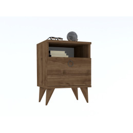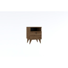 Modernia suoraviivaista tyyliä edustava yöpöytä, joka tarjoaa kaksi säilytystasoa sekä vetolaatikon.